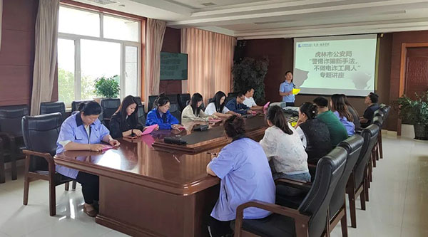 7月10日下午,虎林市公安局曙光派出所民警深入珍寶島藥業(yè)(虎林),開展電信網(wǎng)絡(luò)反詐騙宣講活動(dòng),公司人事行政總監(jiān)蘭培寶組織各部門員工第一時(shí)間到場聆聽宣講。